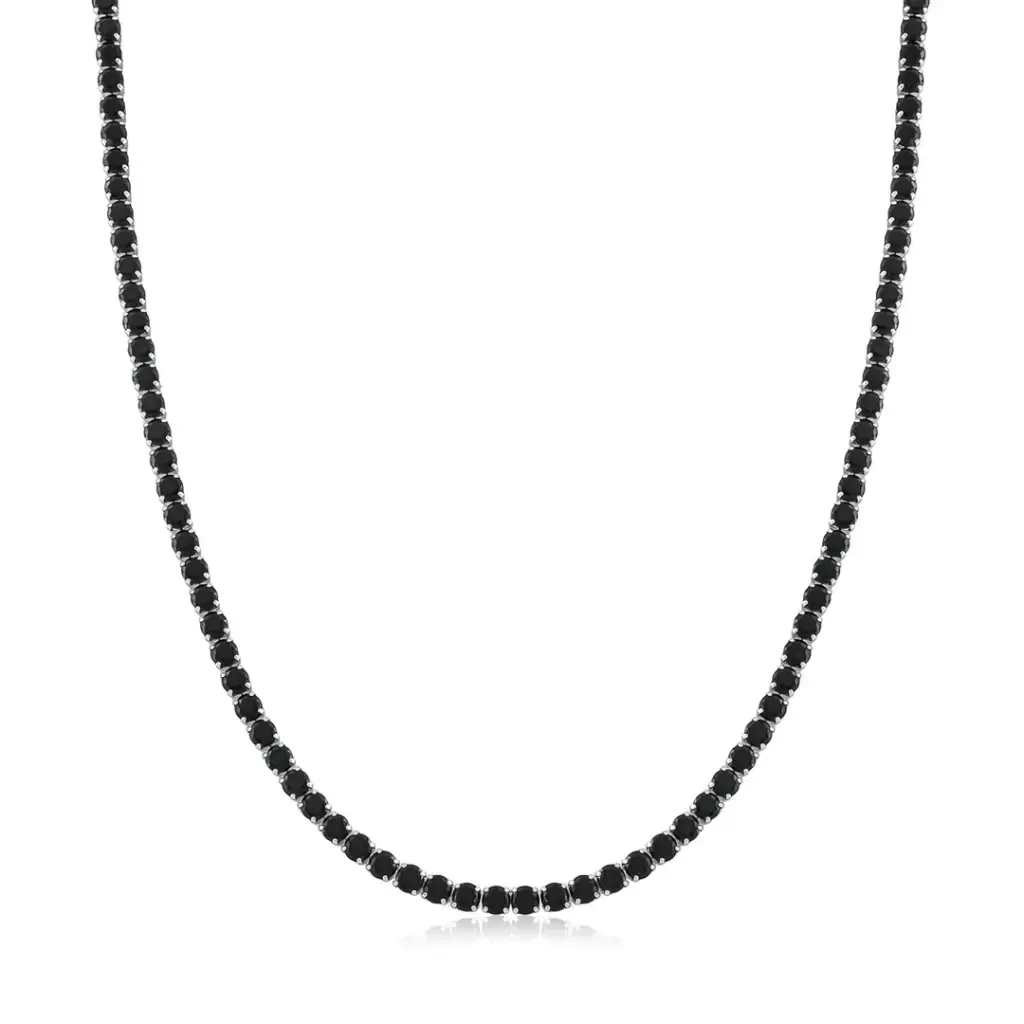 Essa choker é folheada a 10 milésimos de prata 925, com dupla camada de verniz protetor que garante brilho intenso e maior durabilidade. As zircônias pretas, lapidadas com perfeição, trazendo modernidade e poder na medida certa.